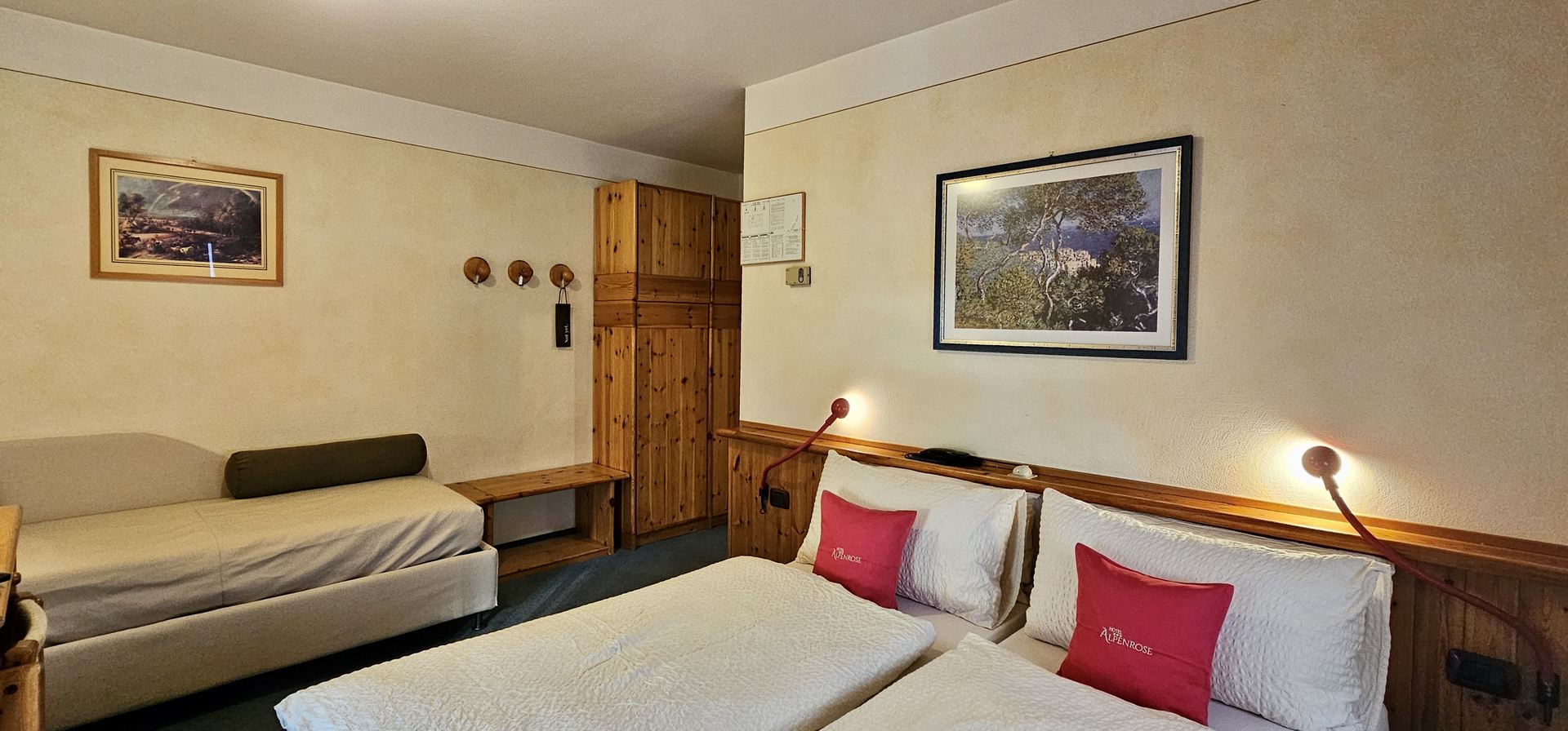 Le nostre confortevoli camere sono arredate in stile classico ed alpino e sono dotate di tutti i comfort per la tua vacanza in relax nel Piccolo Tibet. Disponibili la camera singola, doppia, tripla (poltrona letto) e superior (fino a 4 letti).